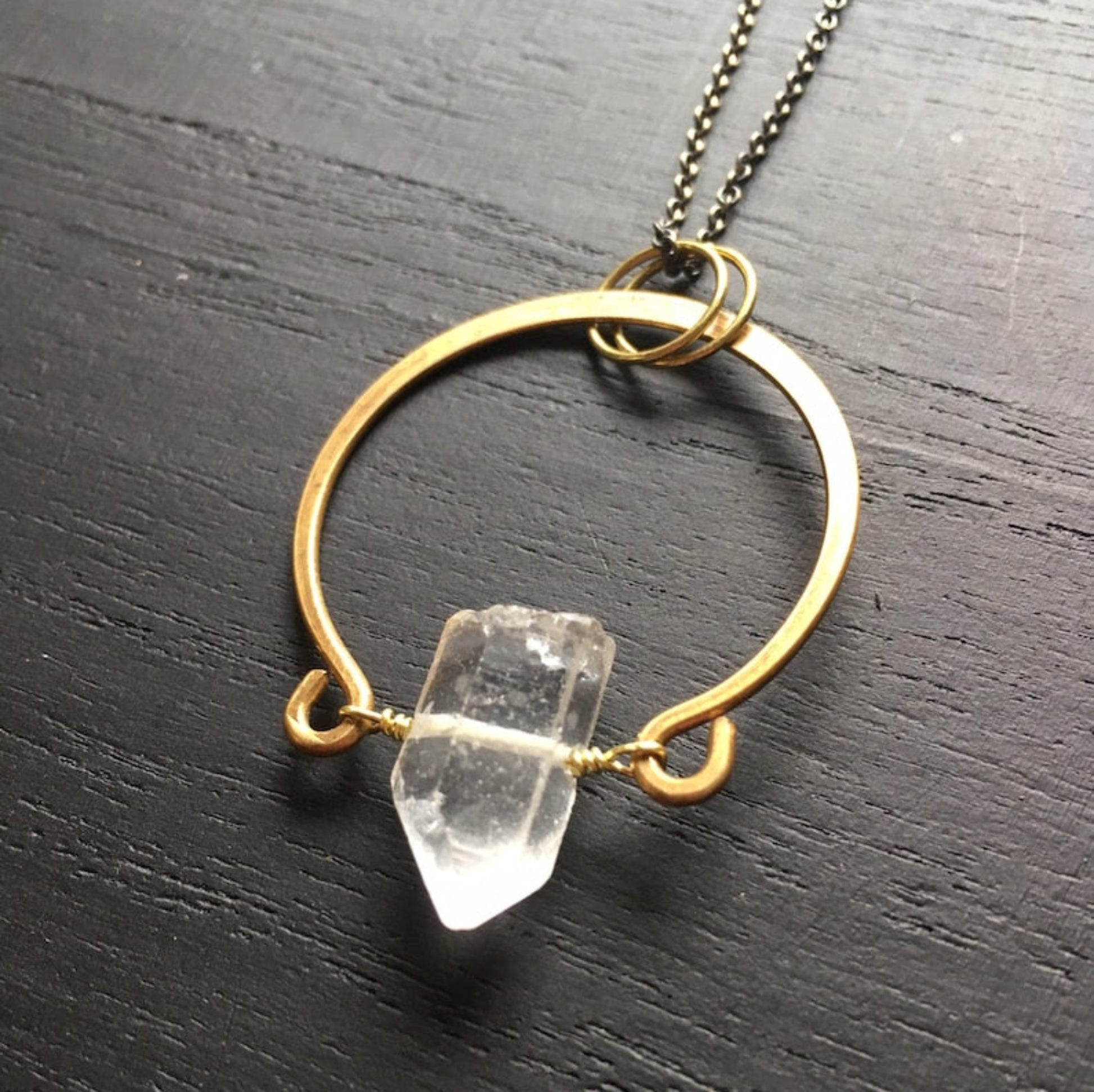クォーツクリスタルアーチネックレス このネックレスは、クリスタルの自然な美しさを引き立てられるデザインです。