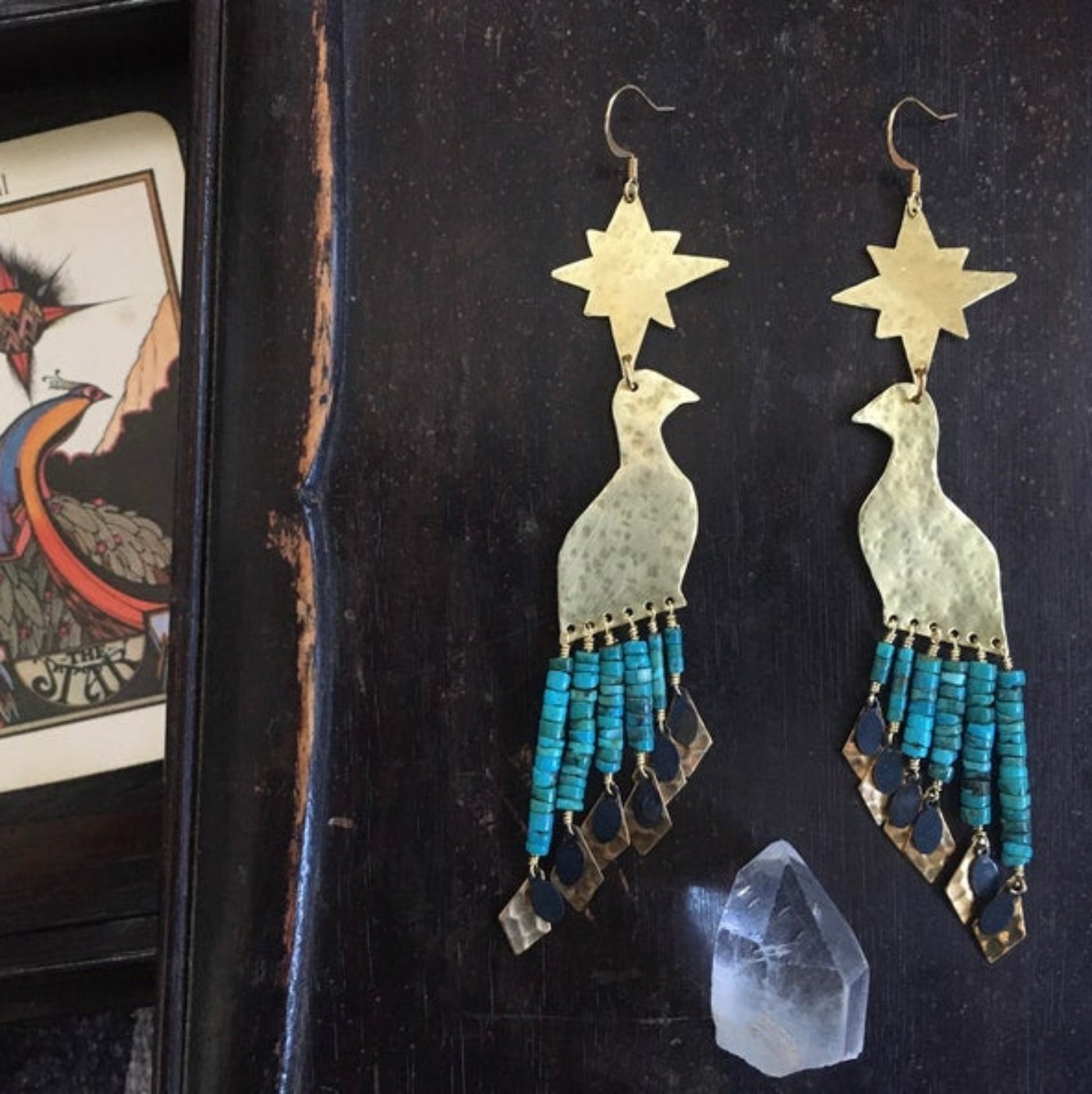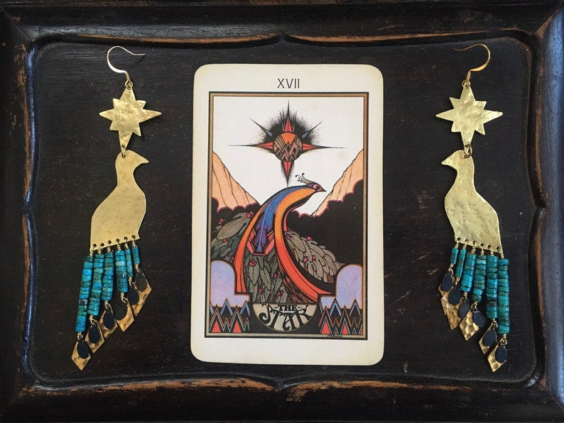 これらのイヤリングは、私のお気に入りのタロットカードの「星」にインスパイアされています。「星」は希望と導きを象徴しています。私たちがどんなに低迷している時でも、星は常に輝き、私たちの道を照らしてくれます。